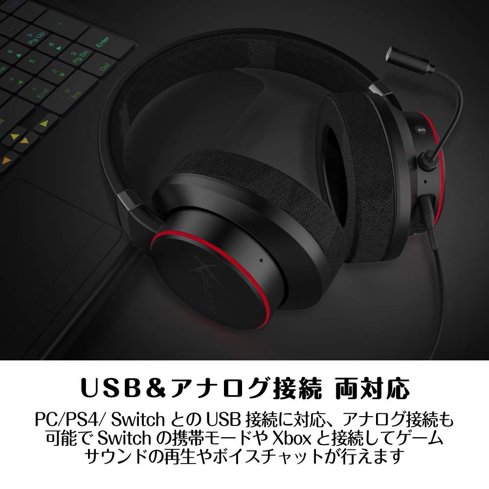 「商品状態」11「商品情報 (新品の場合) 」 「主な仕様」PCとUSB接続でバーチャル7.1サウンドの再生が可能。PS4とのUSB接続ではクリアーなデジタルステレオサウンドで再生。またアナログ接続端子も備え、あらゆるデバイスと接続できるゲーミングヘッドセット。
