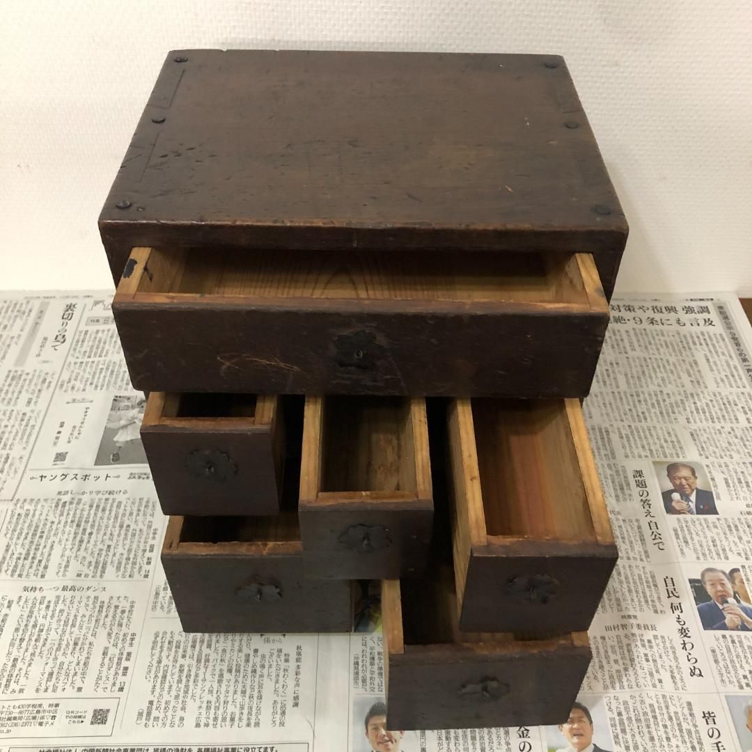 アンティーク 小引き出し 6杯 時代物 桜模様の取っ手飾り 組木作り #697