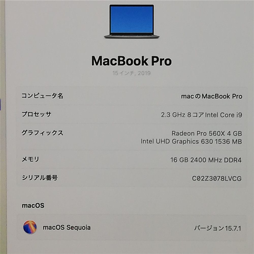 超 アップル Apple MacBook Pro 15 1 A 1990 スペースグレイ 第9世代 Core i 9-9880 H 2.3 GHz 16 GBメモリ 15.4インチ MacOS 15.7