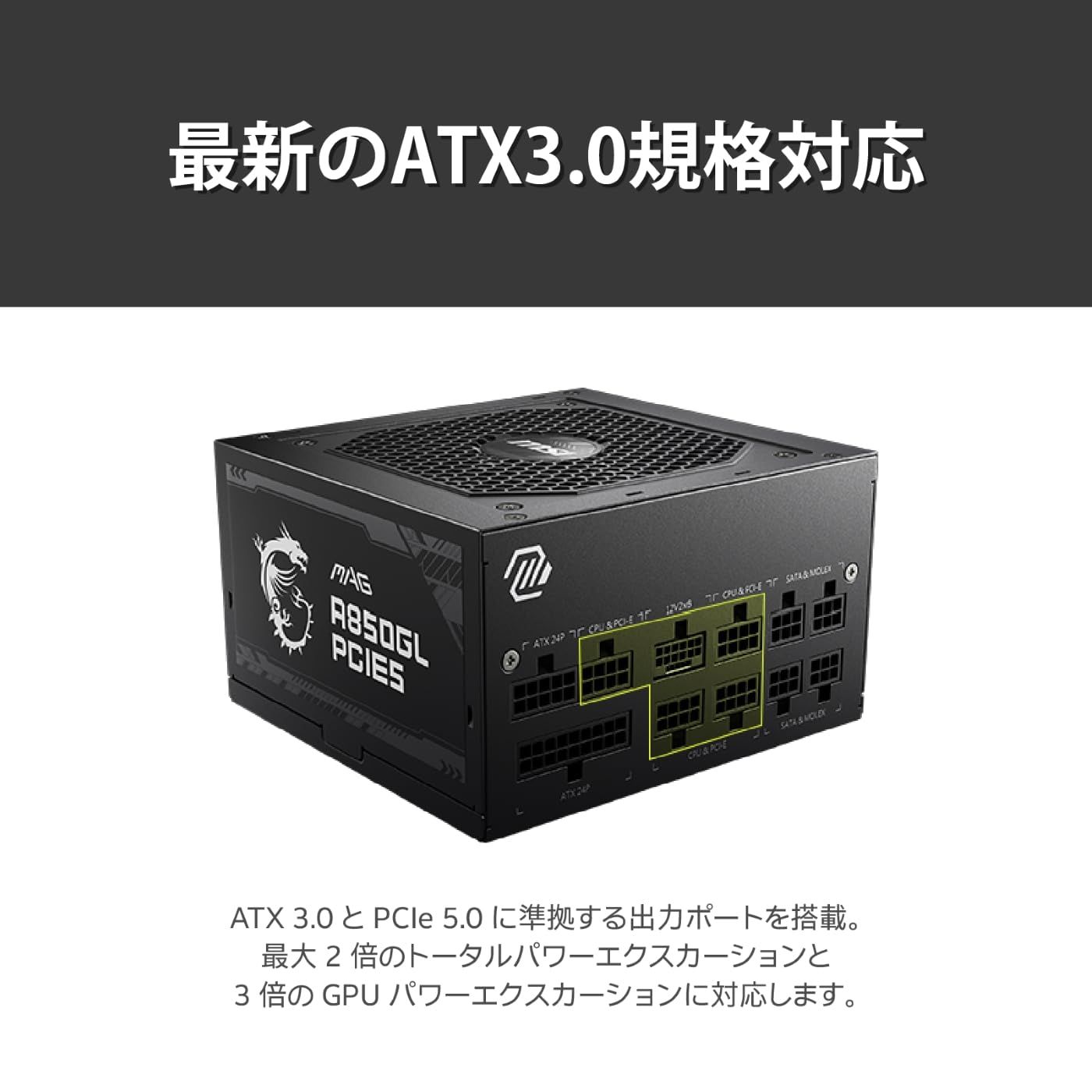 MSI 850W自作PC電源ユニットMAG A850GL PCIE5 (80PLUS GOLD PCIe5.1/ATX3.0ネイティブ対応)PS1327