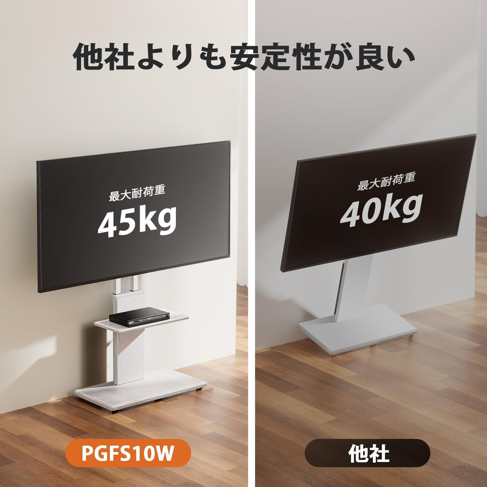 Perlegear テレビスタンド 壁寄せ ハイタイプ tvスタンド tv stand テレビ台 壁掛け 32~70インチ対応 VESA/横100~600mm/縦100~400mm 耐荷重45kg 12段目高さ調節 左右20度首振り 家用/学校/病院/ビジネス展示用 木目調ホワイト PGFS10W