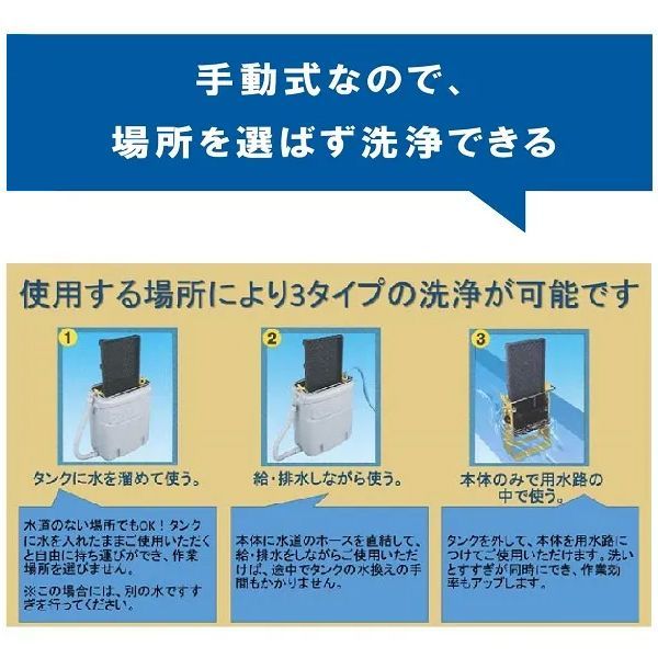 ●手動式なので洗う場所を選びません。