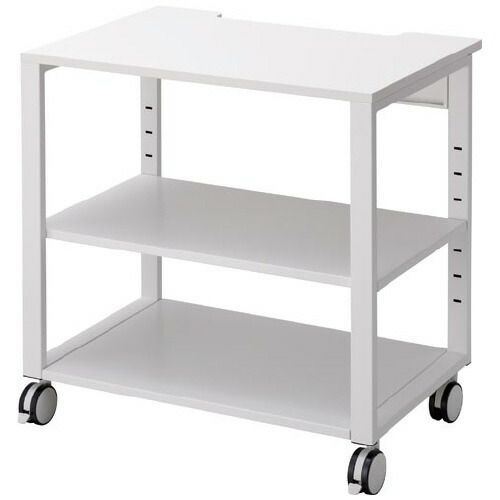 ●種別/幅700奥行500●カラー/ホワイト●外寸法/幅700×奥行500×高さ720●天板厚さ/18mm●棚板寸法/中段:698×406×18mm、下段:619×444×18mm●材質/天板:(表面)メラミン化粧板(芯材)パーティクルボード(エッジ)PVC、フレーム・棚板:スチール、キャスター:ナイロン●質量/16.2kg●耐荷重/天板:約100kg、棚板1枚あたり:約20kg●総耐荷重/約100kg(全て均等荷重)●棚板枚数/可動棚:1枚(50mmピッチ)
