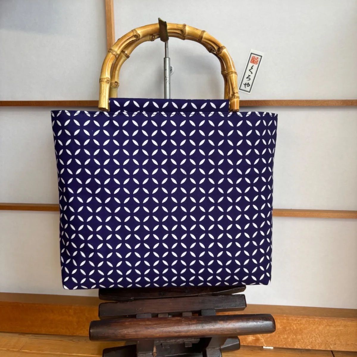 バンブー手提げ 横型 七宝柄 紫系 祭り小物 和装小物 男女兼用
