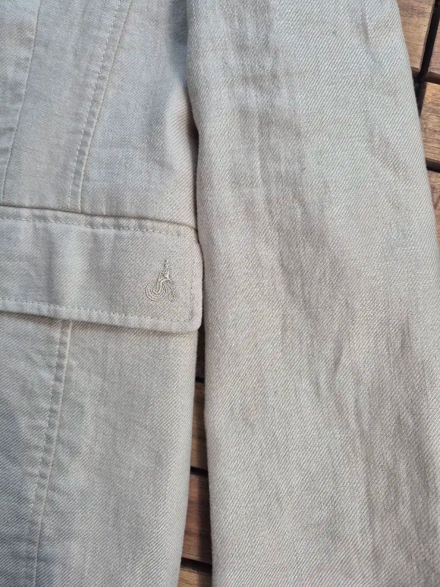 ビーンポール アイボリー カラー リネン ブレンド ジャケットです。リネン 100% 素材で、ポケット側に ロゴがあります。