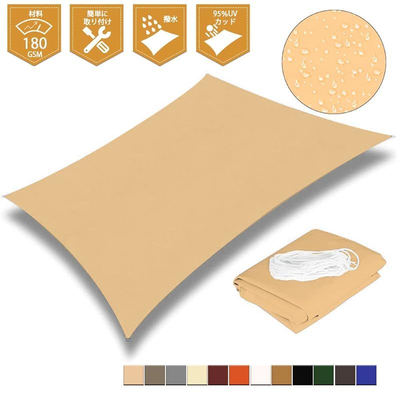 Ankuka 日除けシェード サンシェード クールシェード UVカット 紫外線98%カット m長方形 軽量 撥水 耐久性 洗濯 ベランダ 廊下 庭下 庭先用 収納袋付き 砂色