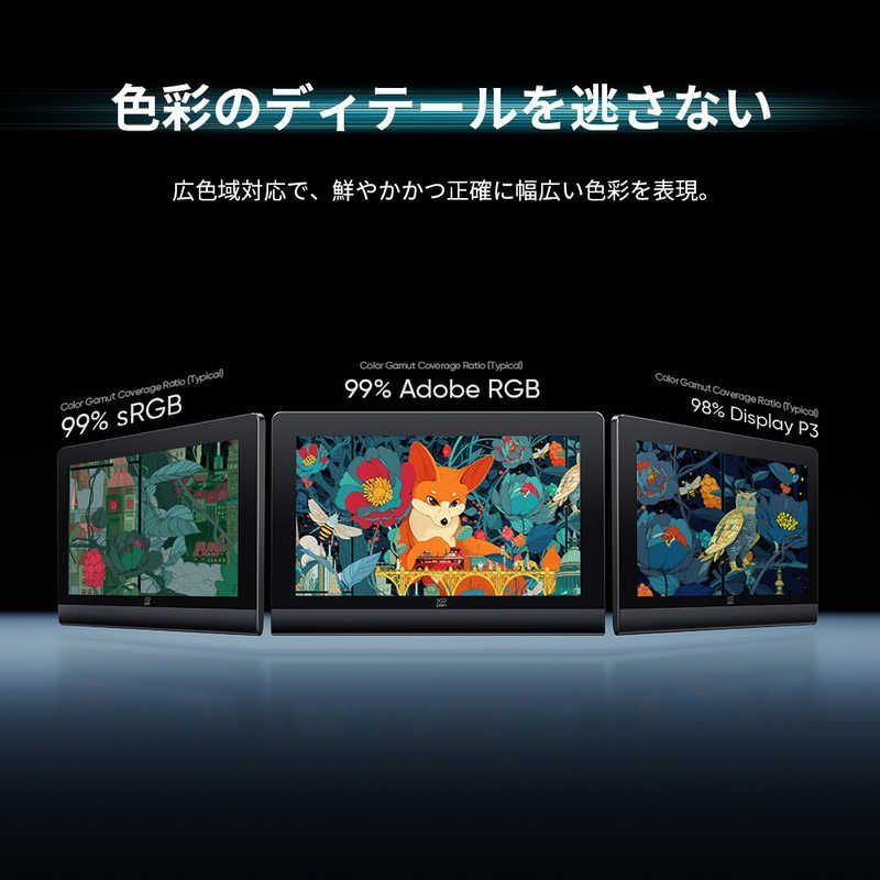 ●sRGB 99%、Adobe RGB 99%、Display P3 98%の高い色域カバー率