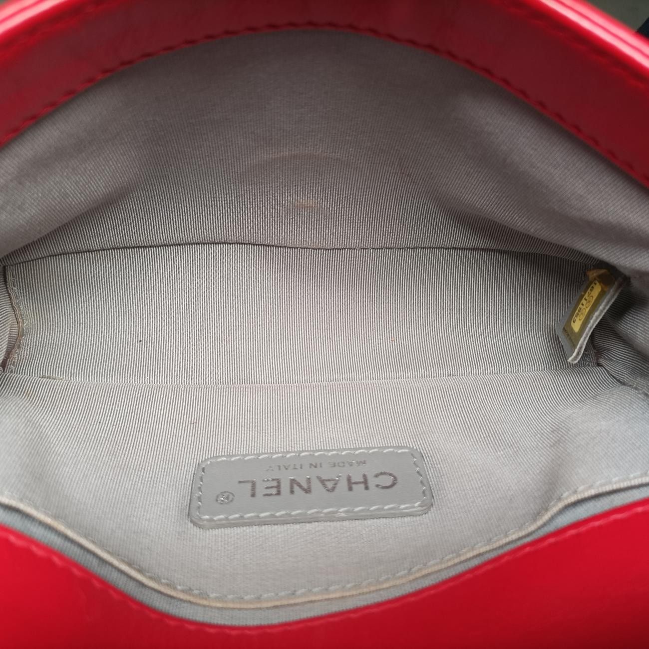 シャネルChanelボーイシャネルレッドパールフィッシュスキン×ラムスキン