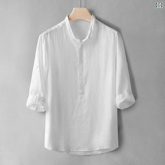 XL メンズ ファッション 服 男性用 オシャレ シンプル 大人 かっこいい 大きいサイズ ストリート 紳士服 夏 スモール リネン 半袖 シャツ フル 通気性 綿 トップス