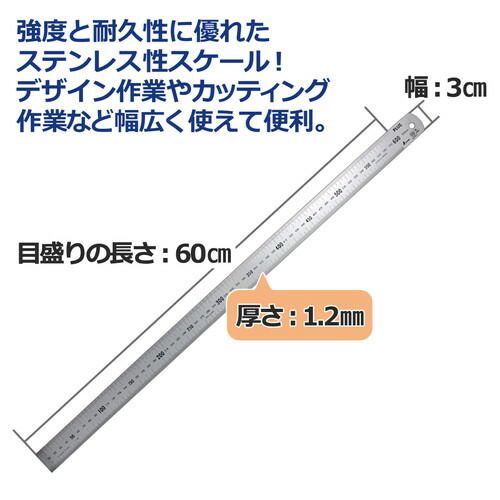 プラス 定規 ステンレス直尺 60 cm 1 2 mm厚 シルバー 3本セット