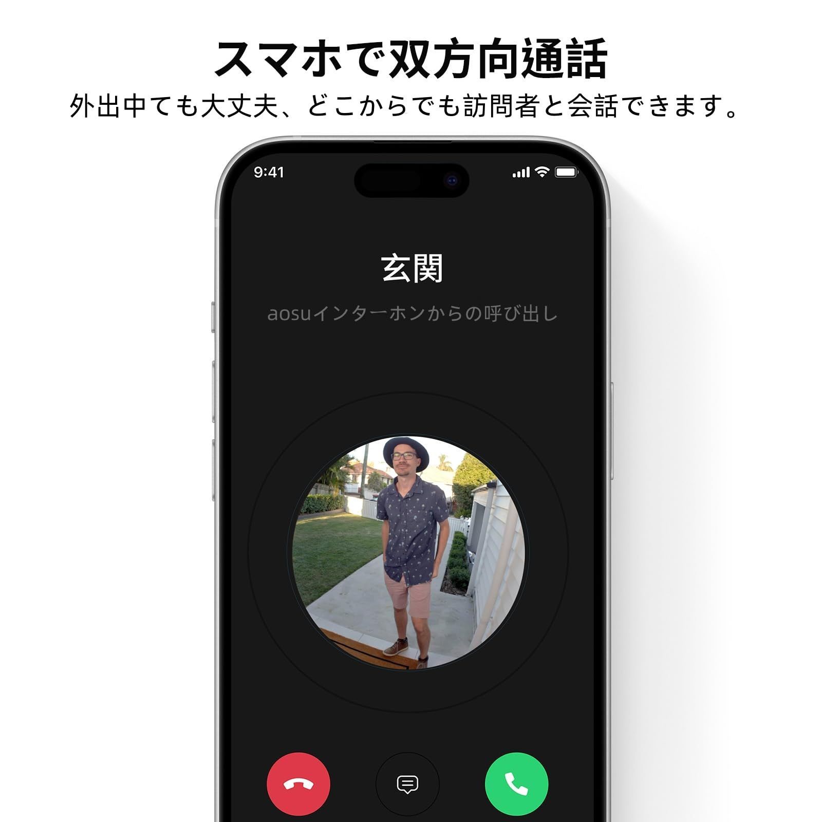 在庫 aosu インターホン ワイヤレス 全身が見える パッケージ自動検出 充電式 工事不要 2.4 G必要wifi式 2 K画素 16 9頭からつま先まで表示 家族共有 動画再生 全身ショット ビデオドアベル ip 66防塵防水 人体検知自動アラーム アプ
