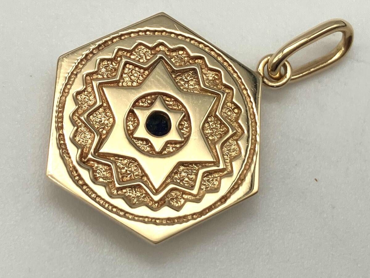 K 18 ペンダントトップ 6角形 18金ゴールド 青 ストーン ラピスラズリ風 六芒星モチーフ 石の種類不明