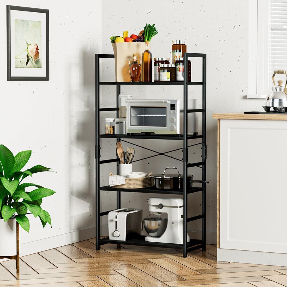 APPOLYN オープンシェルフラック、4段本棚 フリーラック棚、多機能収納ラック、幅60×深さ30×高120cm、木製ラック、寢室、リビングルーム、ホームオフィスなどで使用できます、黒