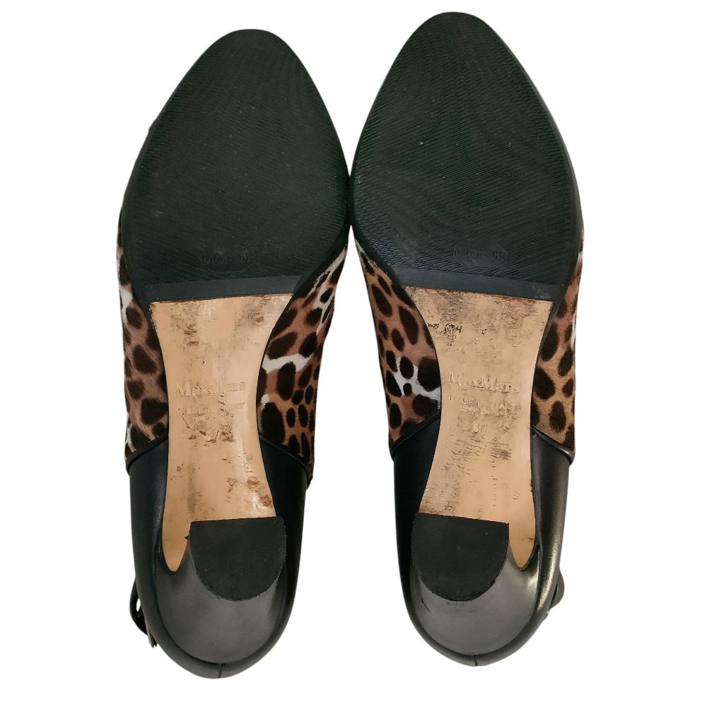 Max Mara マックスマーラ ハラコ レザー アニマル柄 レオパード ショートブーティ シューズ 37 24 cm相当 ブラック×ブラウン レディース 古着