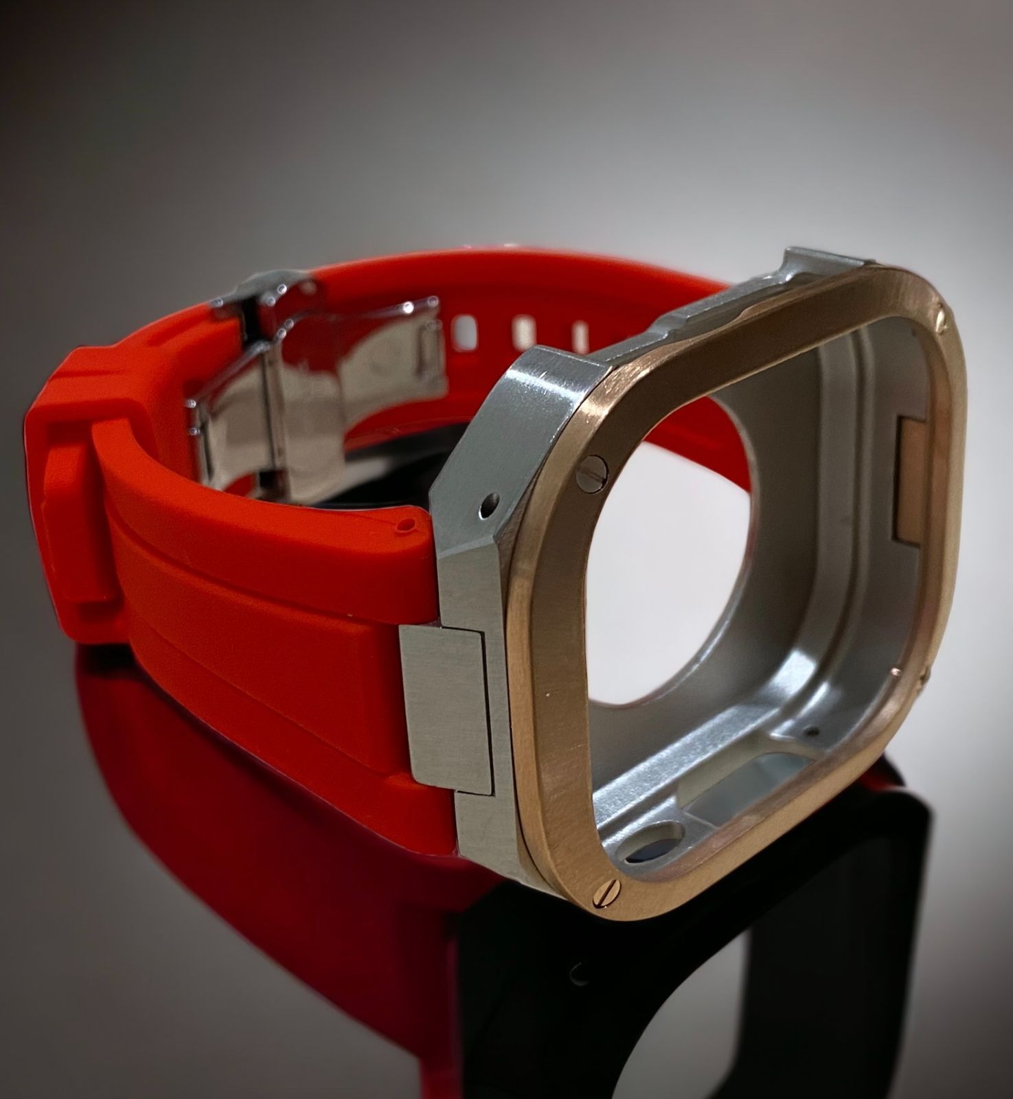 レッド×ローズゴールドシルバー 49 mm apple watch ultraアップルウォッチラバーメタルカバーセット ウルトラ 49ミリ用 カスタム ultra 1 2 3