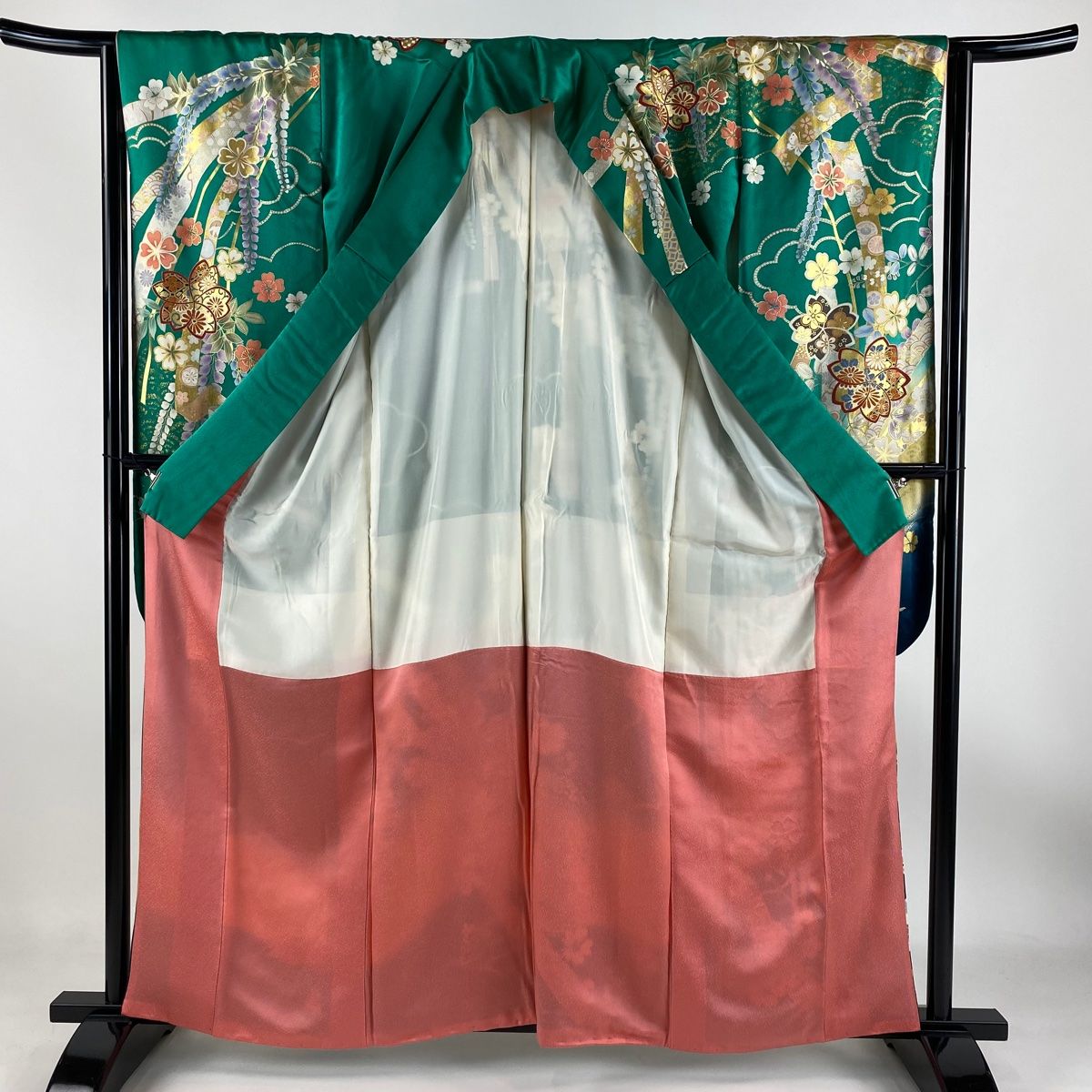振袖 身丈161 cm 裄丈64 M 袷 桜 藤 金彩 金糸 緑 正絹 秀品