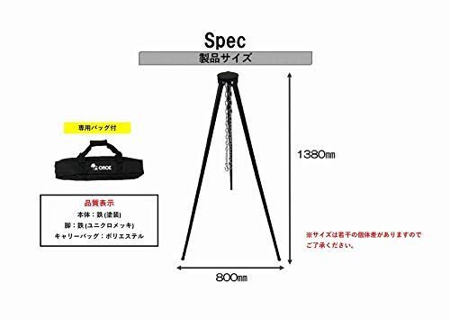 ブラック ONOE ハンディトライポッド HT 141 B 吊り下げ料理に適合な三脚スタンド ダッチオーブンや鍋料理に 焚き火用に パイプを繋げるだけの簡単設営 軽量コンパクト キャリーバッグ付 チェーンで長さ調節 S字フック付 中