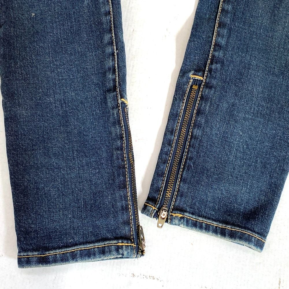 03 wm 21720 HYSTERIC GLAMOUR ヒステリックグラマー スキニーデニムパンツ ダメージ 裾ジップ スタッズ INDIGO レディース