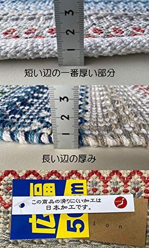 ★インド独特の【マハラジャ】を連想させる色感覚の中から日本に向く色調を選びました。★縦糸 横糸1本1本 ていねいに織り上げられたハンドメイドの商品です。★綿特有の肌触りと美しい色合いは お部屋を明るくします。★玄関だけでなくバスマットでも、インテリアのアクセントとしても幅広くお使いいただけます。★縦横のサイズは手織り(ハンドメイド)の為十分注意しておりますが、表示サイズと誤差が生じる事があります。★生地表面に黒っぽい粒粒が見受けられることがたまにありますが、天然素材である綿花の表皮の一部です。ご安心ください。★滑り止め加工は安心の国内加工です。加工前後の写真のようにインド綿本来の風合いをダメにせず、滑り止めの機能を果たすように配慮をしています。滑り止めは経年劣化いたします。洗濯の頻度、使い方によって効果期間は変わります。場合によっては市販の滑り止めシートをお使いください。