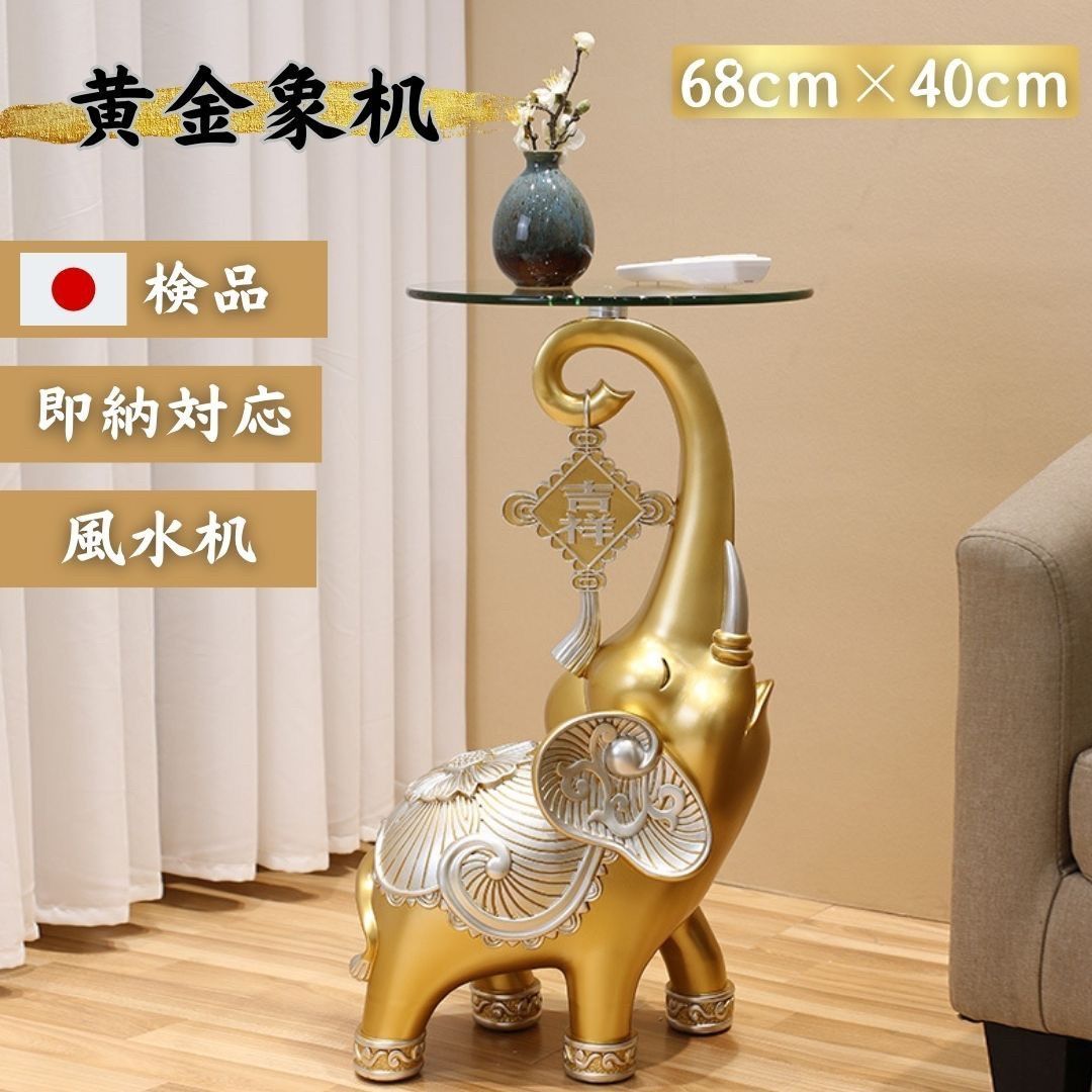 テーブル 置物 ゾウ ゴールド エレファント 特大サイズ ガラステーブル付き サイドテーブル 高さ 布団テーブル テレワーク おしゃれ 在宅 パソコンデスク ベッド ノートPC台 ソファーテーブル ミニテーブル コーヒーテーブル ナイトテーブル ソファ