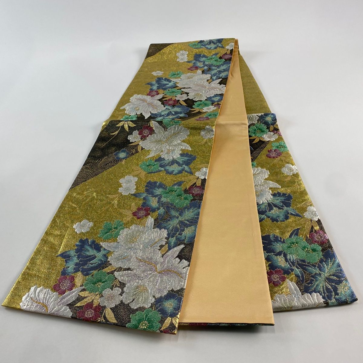 袋帯 秀品 草花 桜 金銀彩 ぼかし 金色 六通 正絹