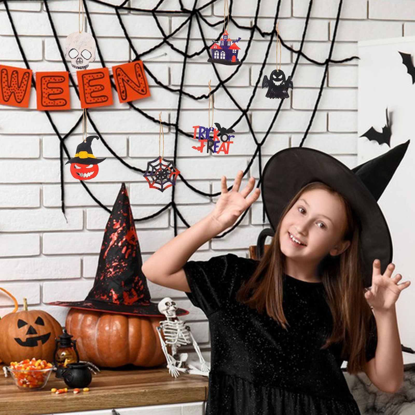 【ハロウィン飾り】紐付きなので簡単に引っ掛けることができます。ツリー、ドア、窓、壁、玄関などにおすすめます。ギフトタグとしても使えます。