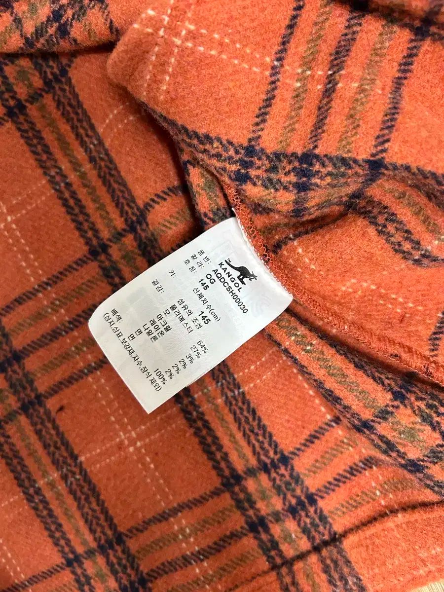 こちらはオレンジ色のKangolキッズシャツアウターサイズ145です。チェック柄が目立つ商品です。