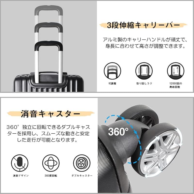 スーツケース キャリーケース 拡張機能付き 機内持ち込み 軽量 大型 S/M/Lサイズ キャリーバッグ 耐衝撃 大容量 ファスナータイプ 静音 ダブルキャスター TSAロック 海外 旅行 ビジネス 出張