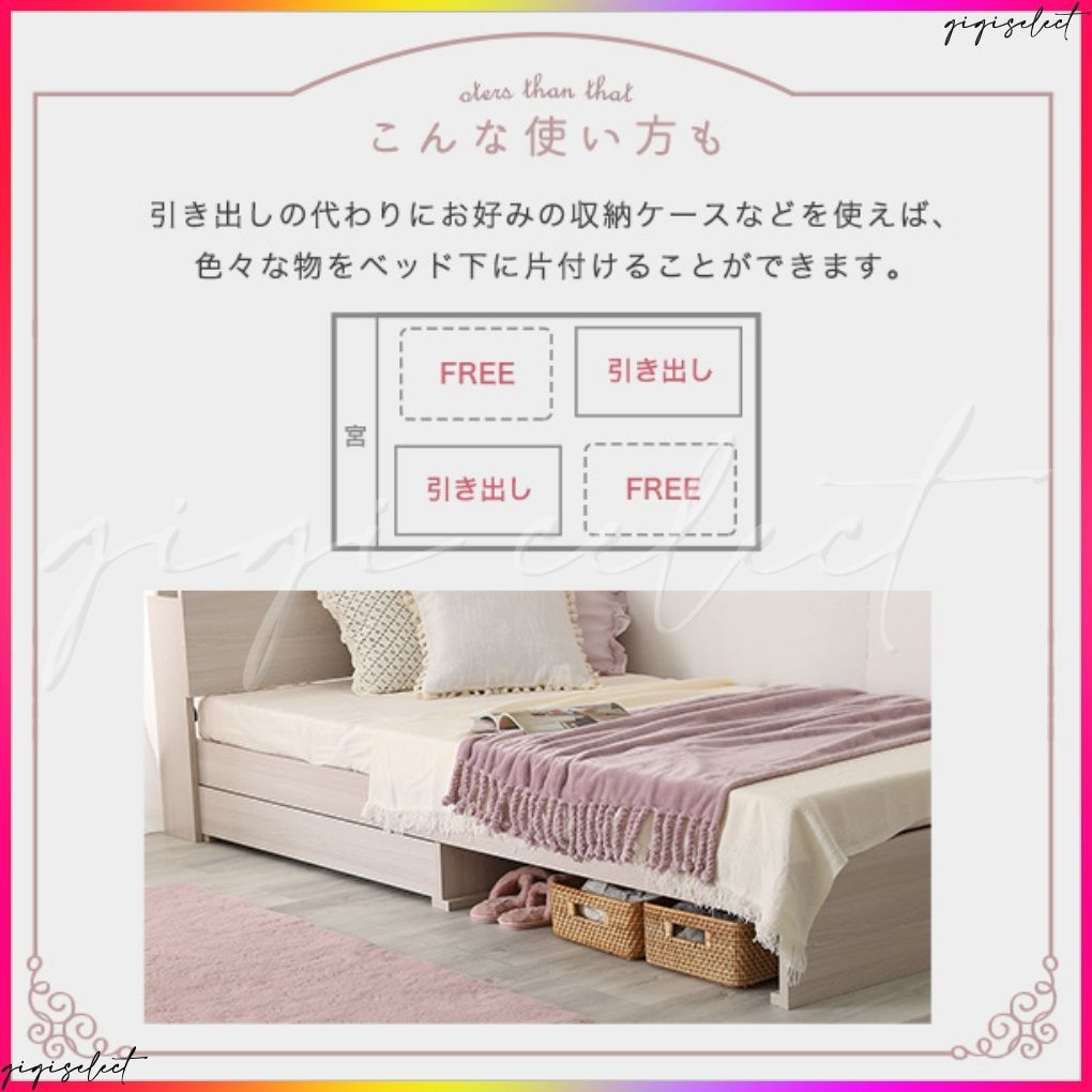 大人かわいいインテリア 棚 コンセント付きチェストベッド セミダブル anail-アネール-