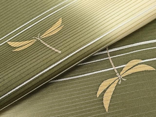 夏物 世界的友禅作家 千地泰弘 小紋 反物 着尺 絽 トンボ 暈し染 国防色 宮腰織物謹製 s 5