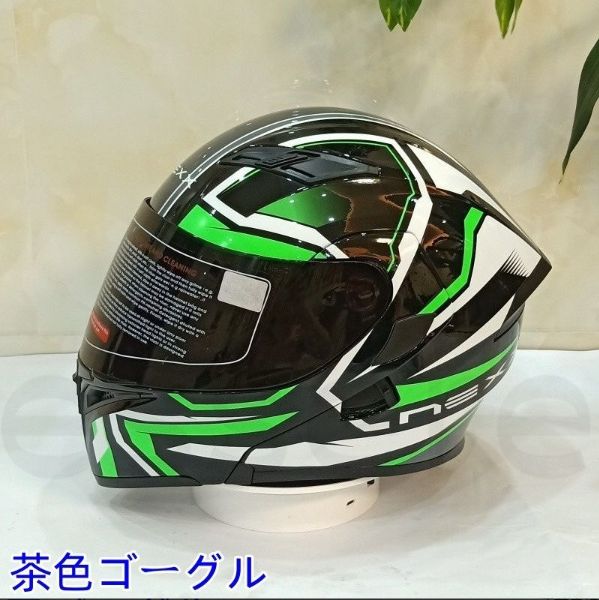 バイクヘルメット フルフェイスヘルメット ダブルレンズ M-XXLサイズ オートバイ用 シールド付 ゴーグル色選択可 緑条