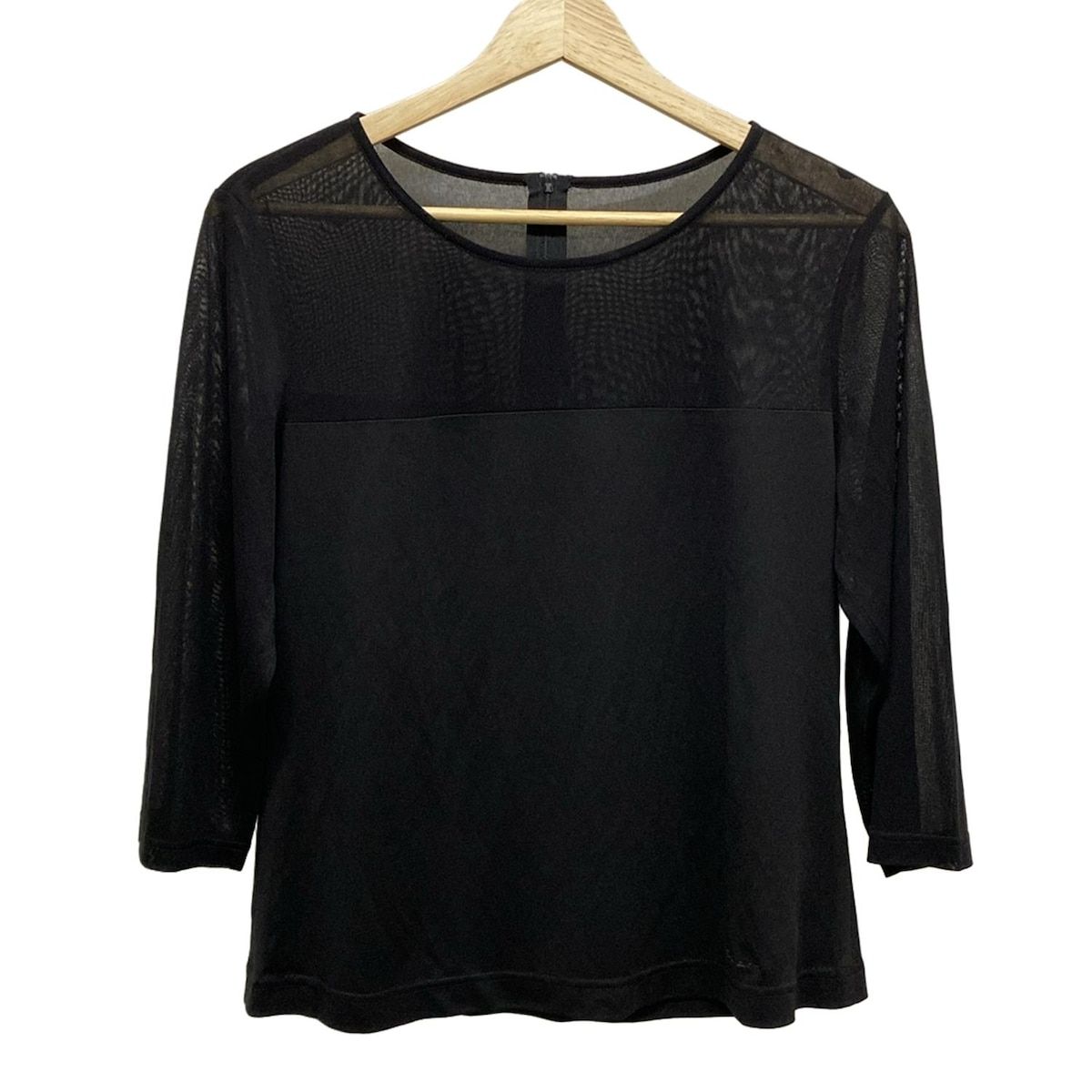 LEONARD レオナール 七分袖カットソー サイズLL レディース - 黒 クルーネック カンカン素材 シースルー