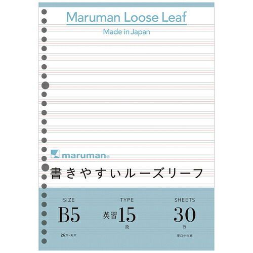 まとめ マルマン ルーズリーフ 書きやすいルーズリーフ 英習字罫15段 B 5 26穴 L 1209 ×