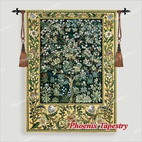 【Classic William Morris Tree of Life Tapestry Wall Hanging, GREEN, 35"x27"】