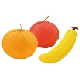 ●内容/みかん、りんご、バナナ●サイズ/みかん:φ13cm、りんご:φ12cm、バナナ:全長13cm●材質/ポリエステル、ナイロン