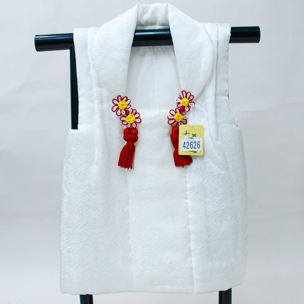 七五三 三歳 女児 女の子 被布コート 正絹 白地 コート丈49 cm ひな祭り 三才 3才 3歳 NO 42626