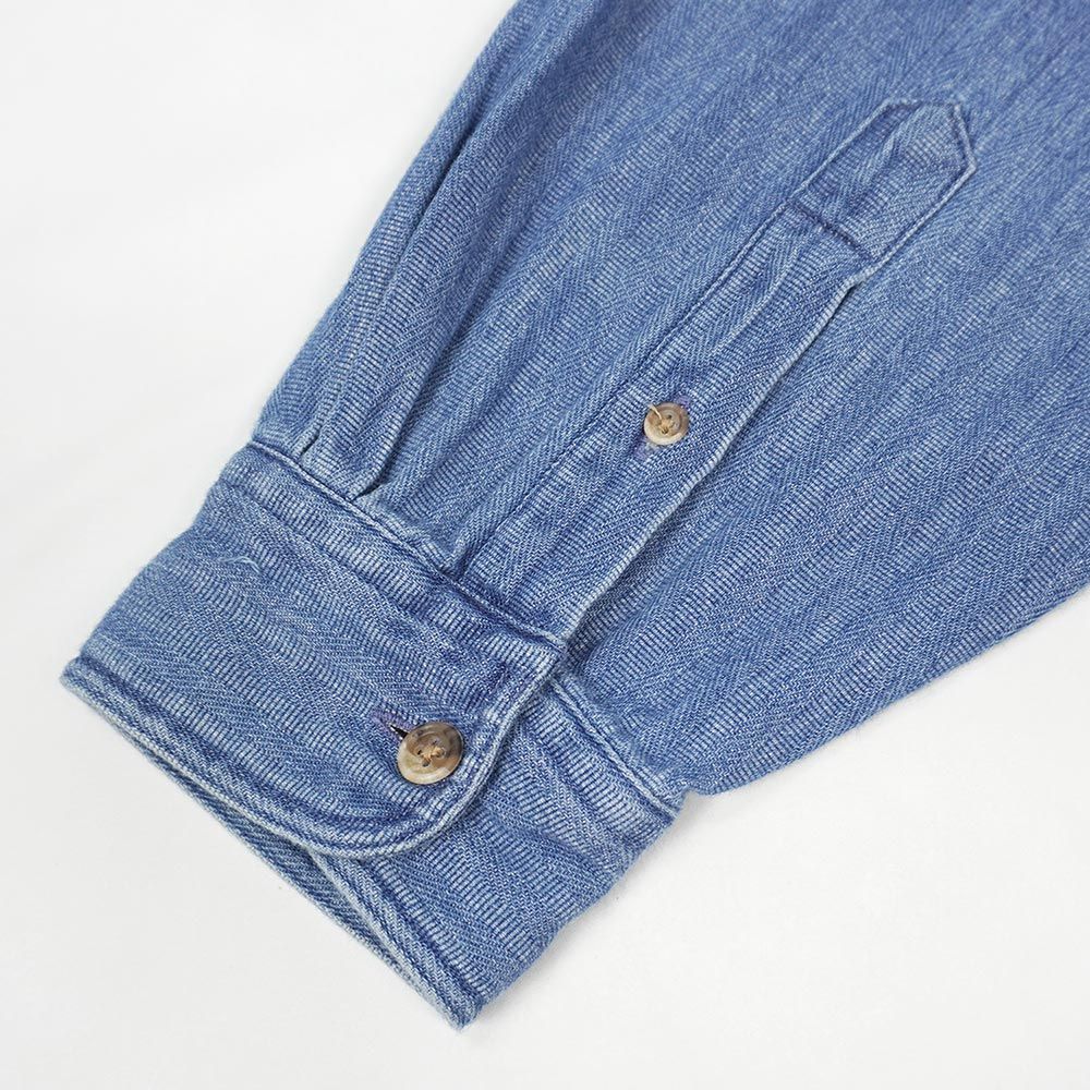 ストライプ柄のインディゴデニムをオーセンティックなボタンダウンシャツに仕立てた、非常に珍しい仕様の一枚。