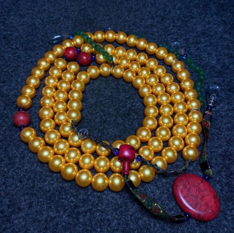 珍蔵朝珠朝珠まろやかで豊かな金色の真珠108粒清代の古い時代に珠串をつけました