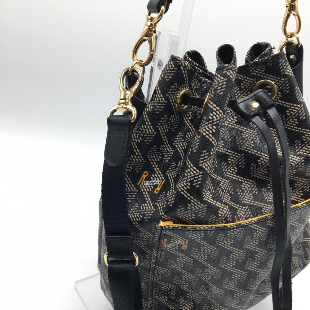 レザレクション 2 WAYカートバッグ 黒×ベージュ系 総柄 ショルダーストラップ付き 巾着型ゴルフ Resurrection