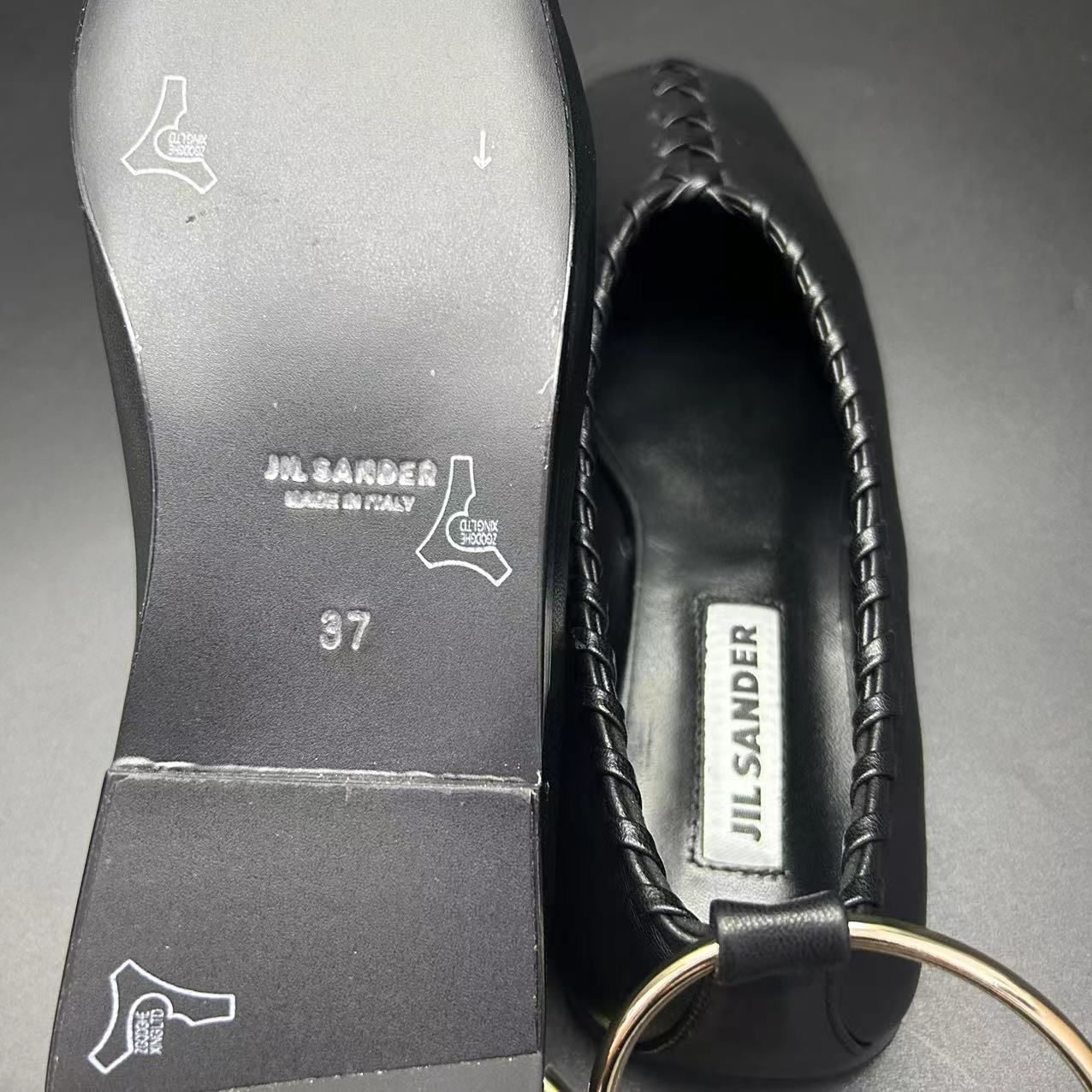 ジルサンダー アンクルストラップ スクエアトゥパンプス バイ