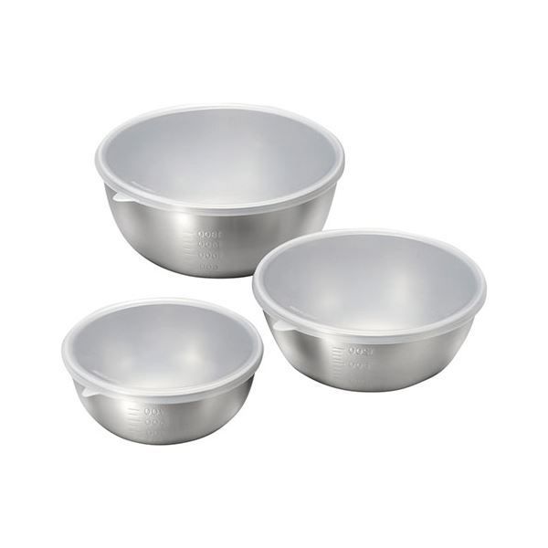 内容物:ステンレスボール15(約1L)(約155×155×68mm)・ステンレスボール18(約1.7L)(約190×190×80mm)・ステンレスボール21(約2.9L)(約220×220×96mm)×各1