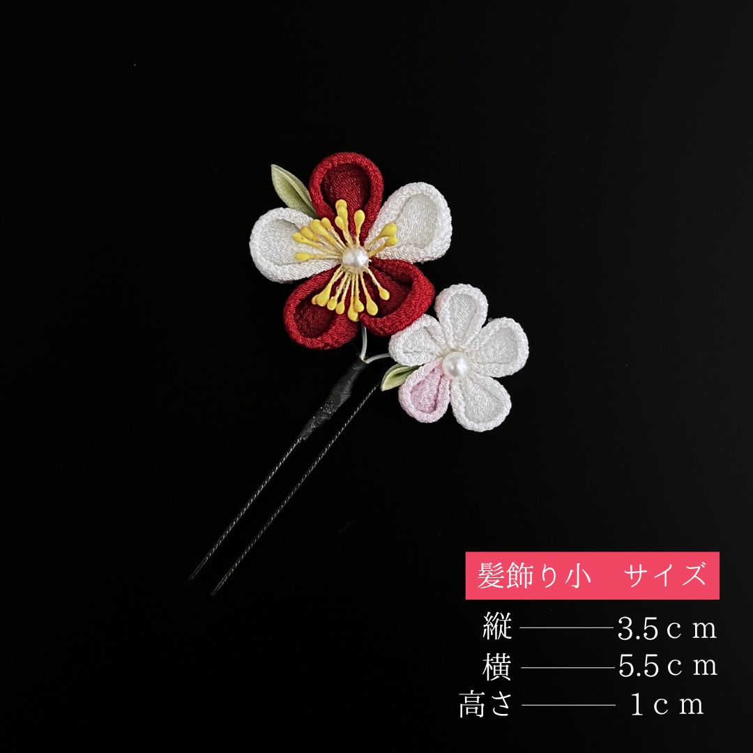 髪飾り小(Uピン式):縦約3.5cm×横約5.5cm×高さ約1cm