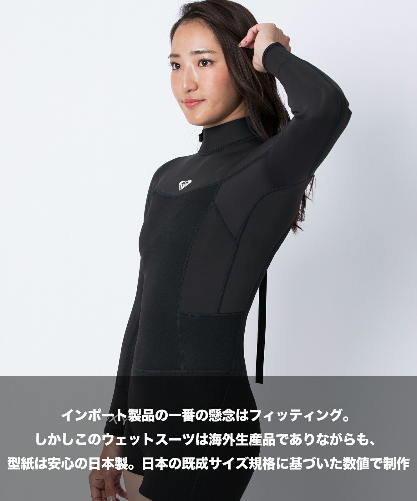 全身が2mm厚で着脱しやすいバックジップタイプの圧倒的にコストパフォーマンスが高い長袖スプリングスーツです。
