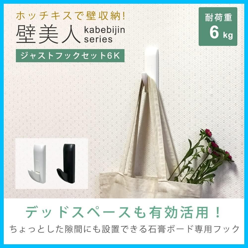石膏ボード壁にホッチキスで簡単に取り付けられる壁美人金具とのセットです。ホッチキスは180°開くタイプで、家庭、事務用のものをご使用ください。作業時間は目安として1台5分程です。壁に取り付けたフック部に装着して使用します。ジャストフック本体はABS樹脂材を使用しています。取付、取外しが簡単で、外した穴あとが目立ちません。ジャストフックにぶら下がらないでください、また6㎏以上のものや、形状によってはフック掛け部に掛けられないものもございます。ご了承ください。※石膏ボード専用品です。石膏ボード以外の壁には取り付け出来ません。