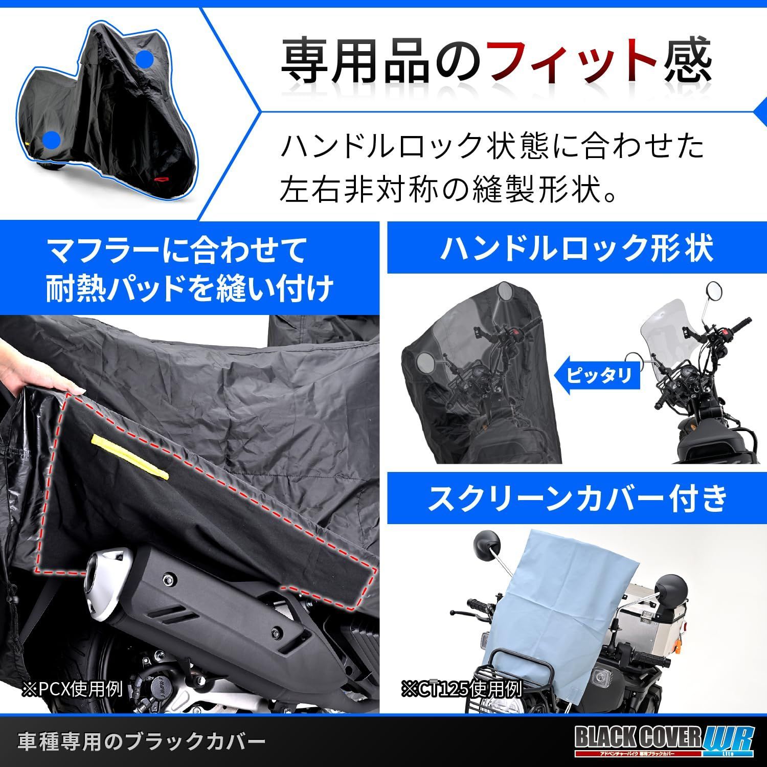 ※ スクリーン装着車でスクリーンのサイズが大きい場合は被せた際のフィッティングが変わる可能性があります。