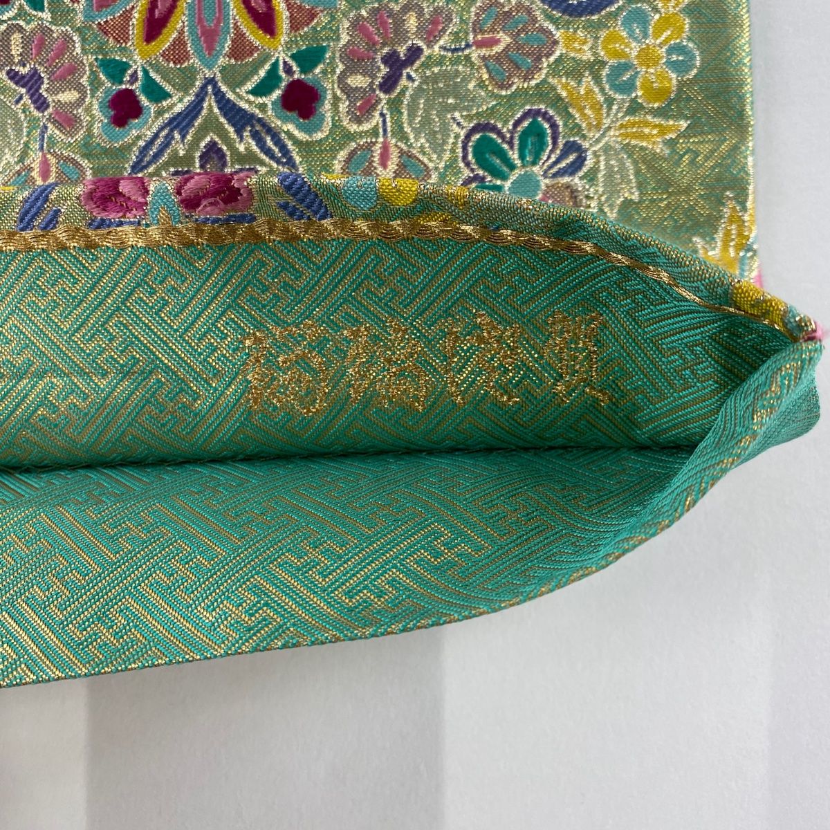 袋帯 秀品 華文 銀糸 箔 薄緑 六通 正絹