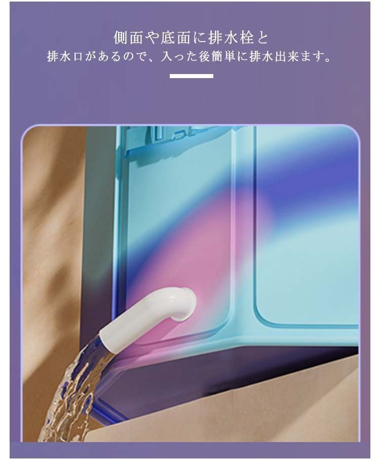 側面や底面に排水栓と排水口があるので、入った後簡単に排水出来ます。