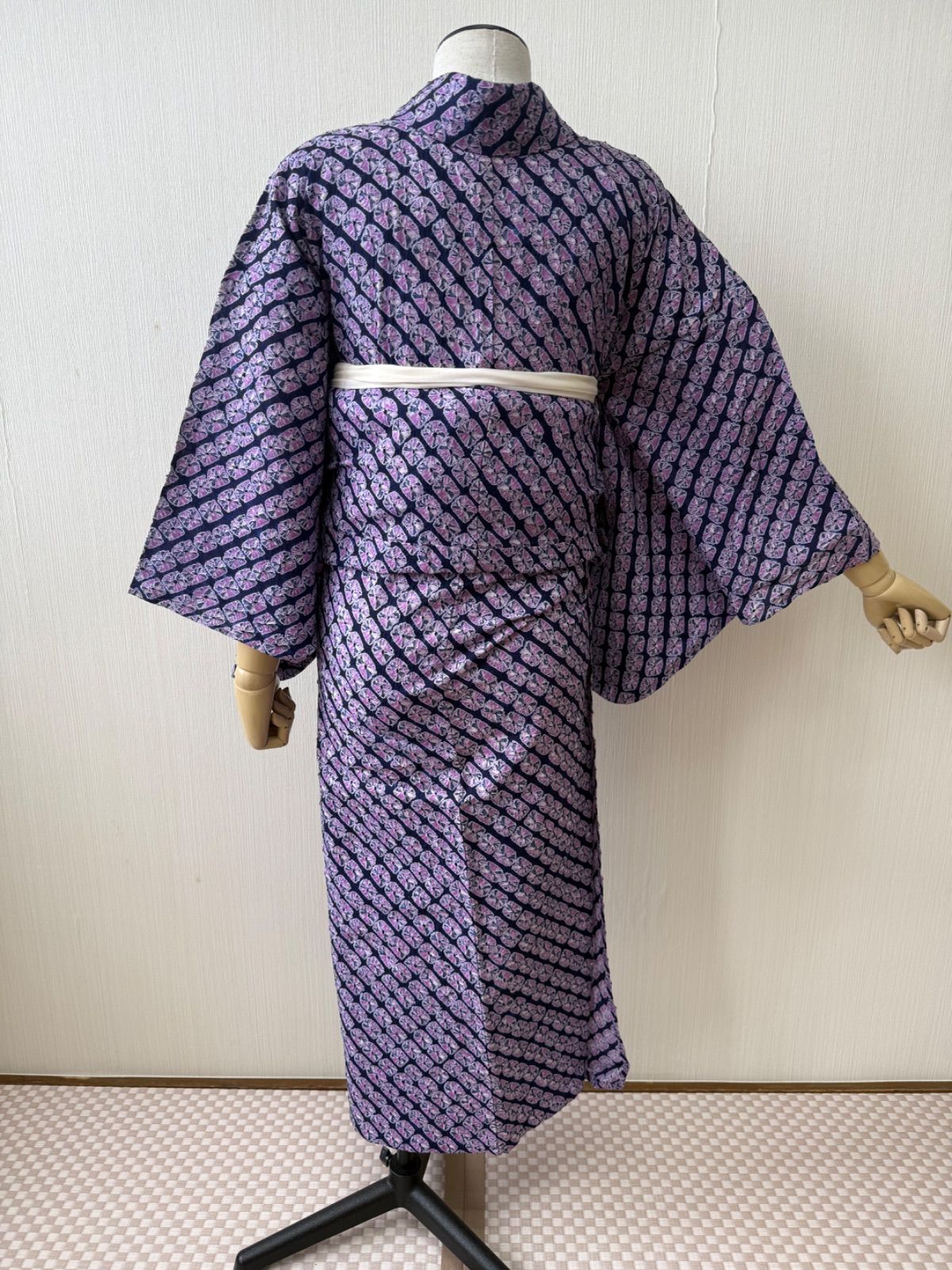 浴衣 絞り 着物 蜘蛛絞り 紫 紺 絞り浴衣 リサイクル着物 y-545
