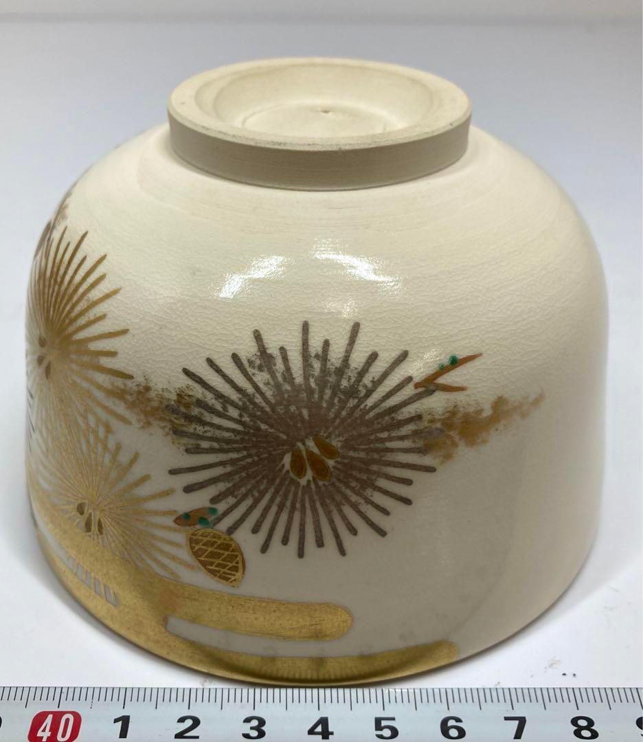 南口閑粋 色絵唐松茶碗 共箱 直径12㎝ 東山6-0114