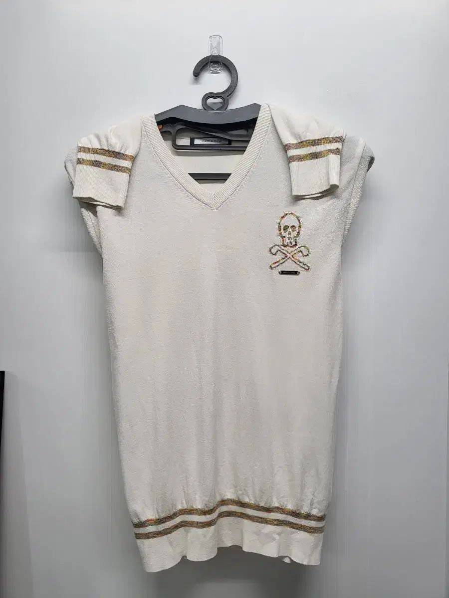 これはマーク&ルナの女性用ニットゴルフスーツです。白地にスカルとゴルフクラブクラブが刺繍されていてユニークです。周りを回るときもかっこよく着れますし、送料無料です。ご不明な点がなければ、すぐに安心してお支払いいただけます!